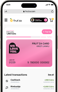 Mbush llogarinë me Frut'za Coin duke përdorur kartën tënde, pastaj paguan me një klik.